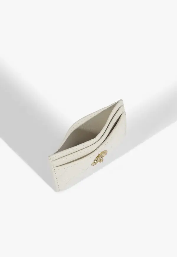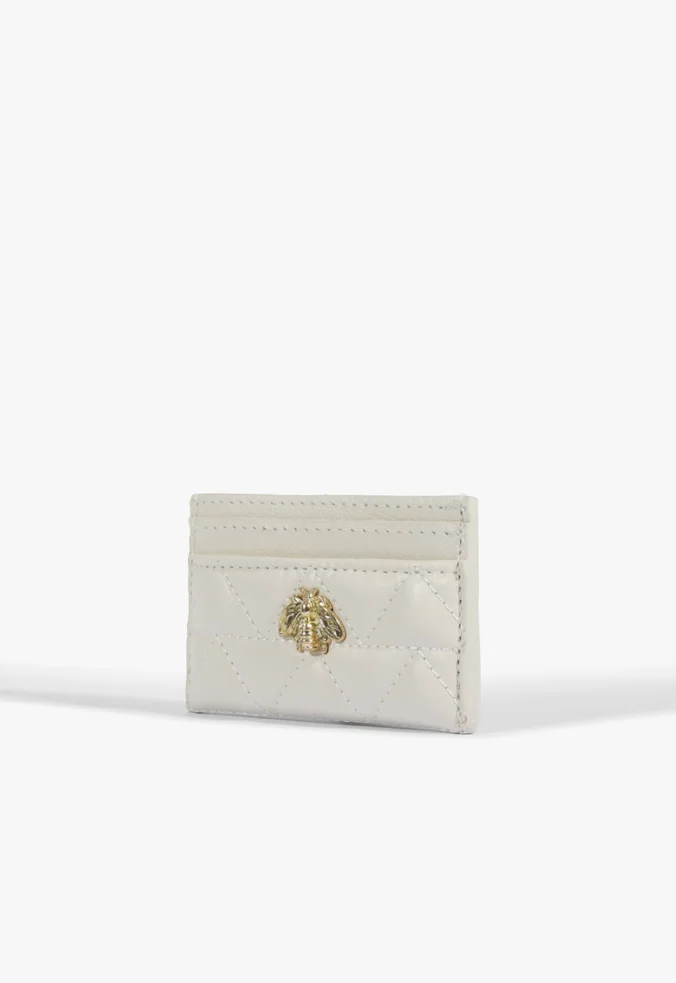 Card holders can also be stylish and sophisticated! This model proves it by combining Off-White quilted leather with the luxurious gold Believe bee. With card slots on the front and back, plus a middle compartment for documents and cash, it's the practical and compact accessory you’ll want to carry everywhere!