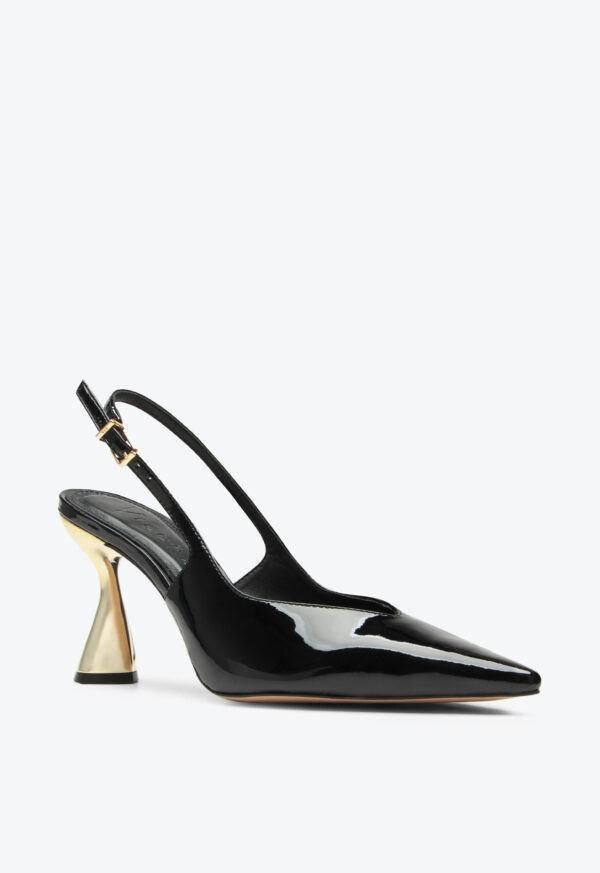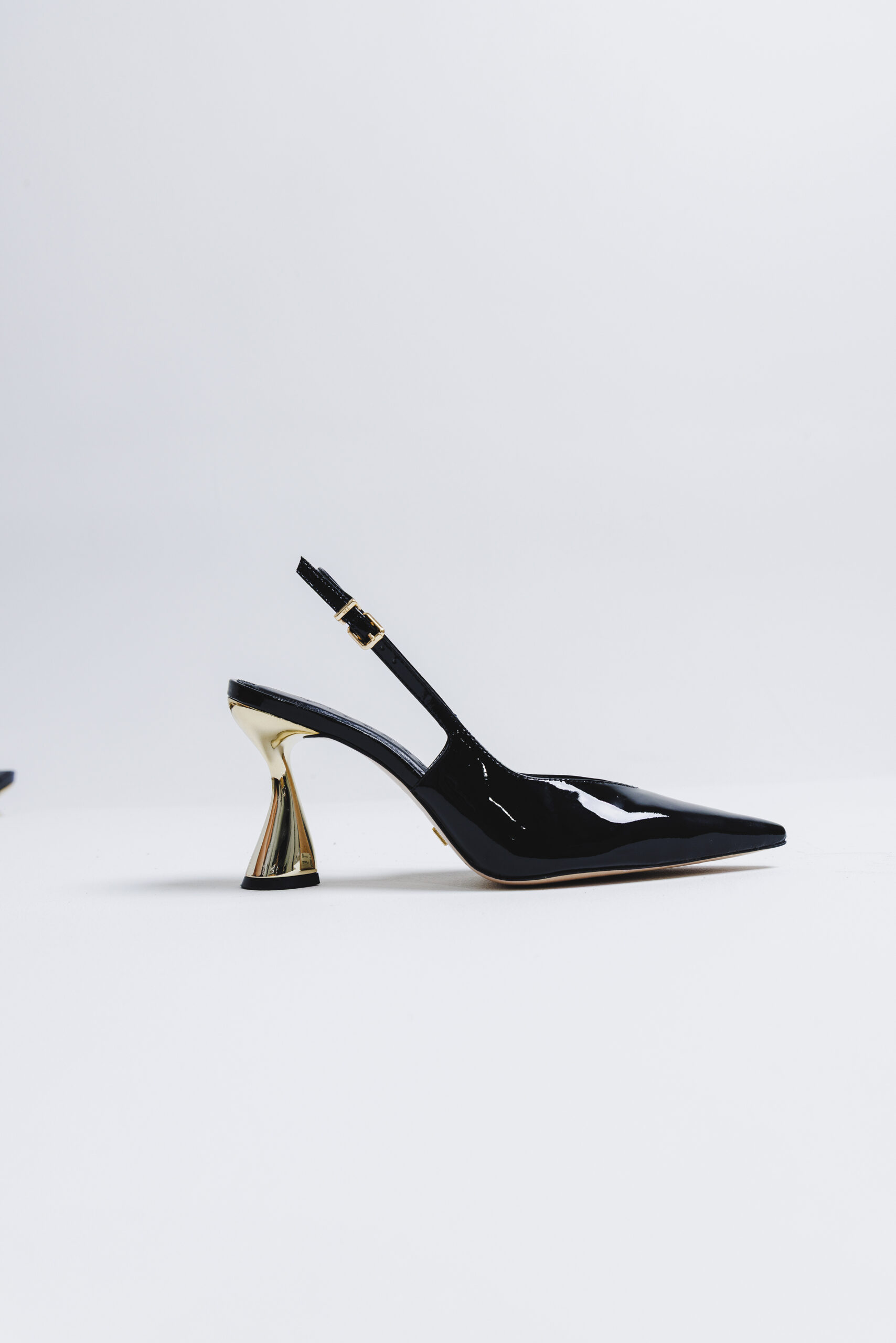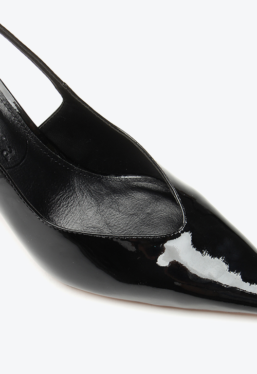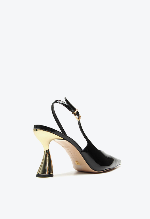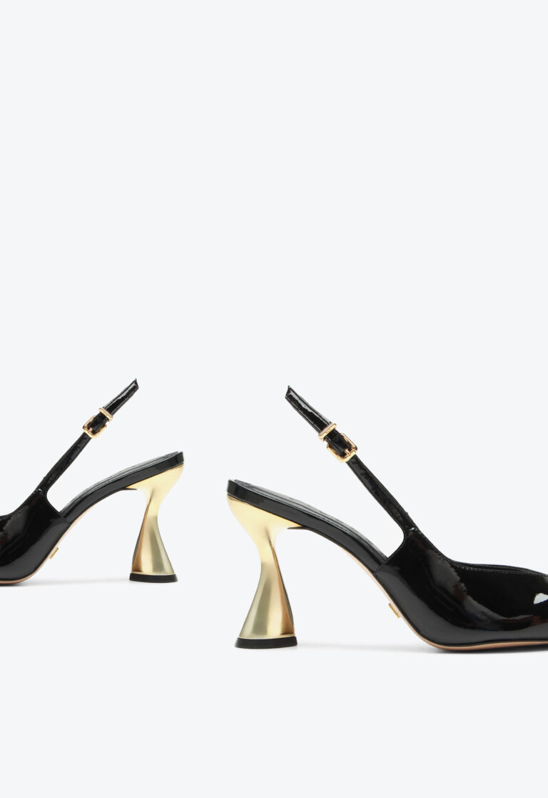 High-heel slingback in patent leather. With a glossy finish and sophisticated design, this model combines comfort and style in a versatile piece. The high heel elongates the silhouette, adding elegance, while the refined details bring charm to the look. Ideal for pairing with formal or casual outfits with personality, this slingback is perfect for women who seek an elegant shoe full of attitude.