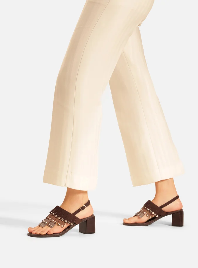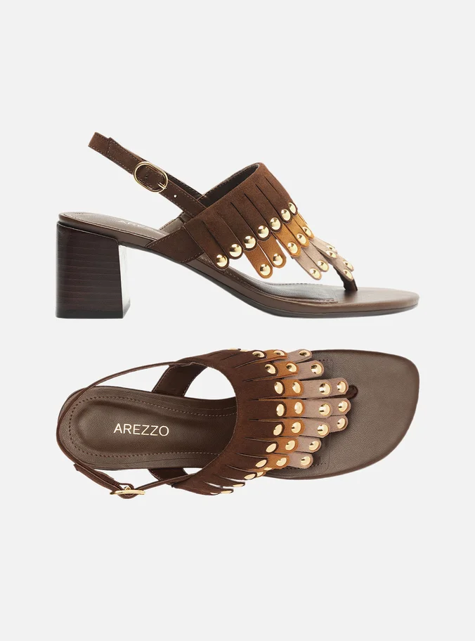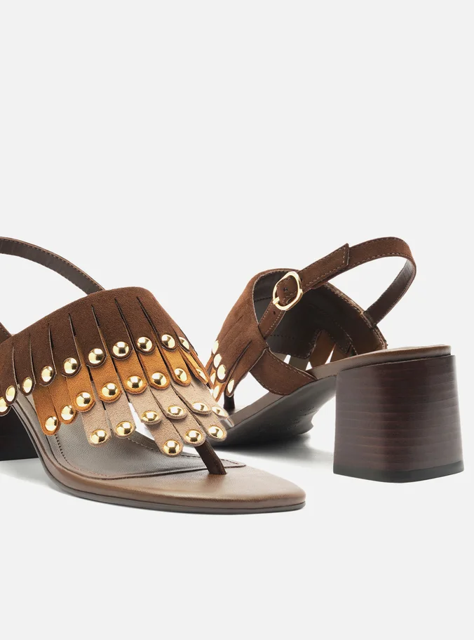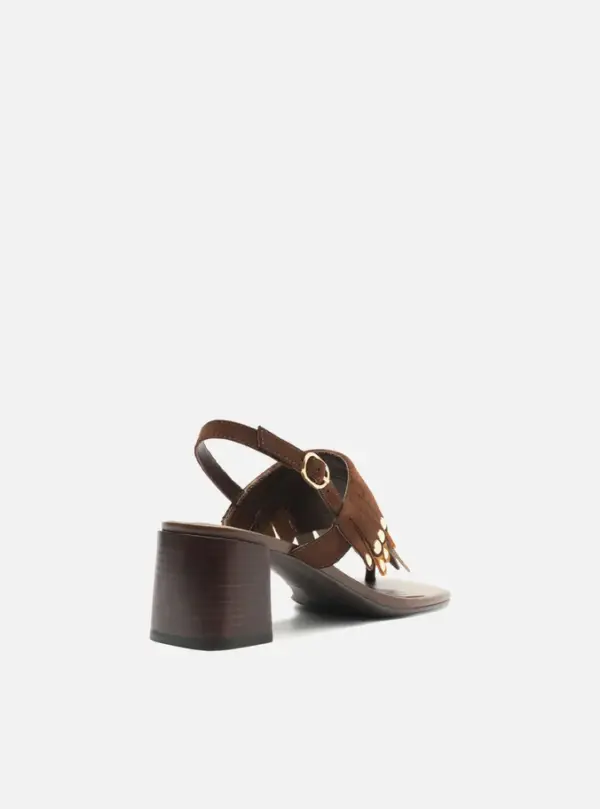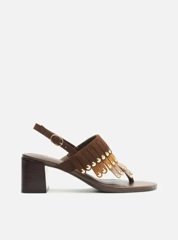 Brown Suede Block Sandal with Mixed Fringes