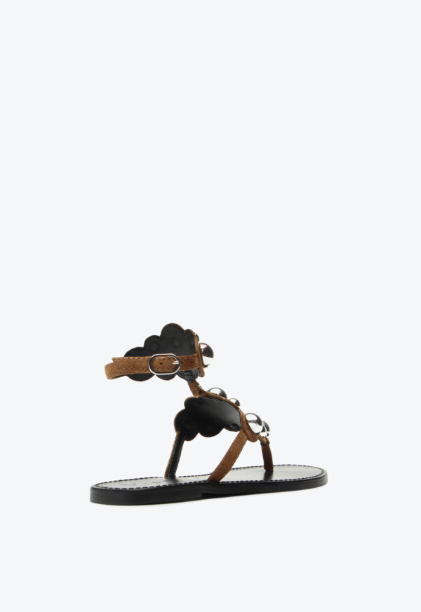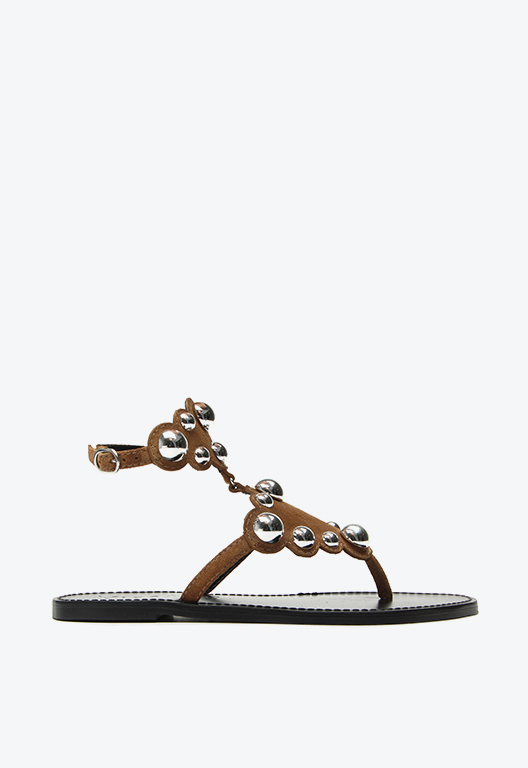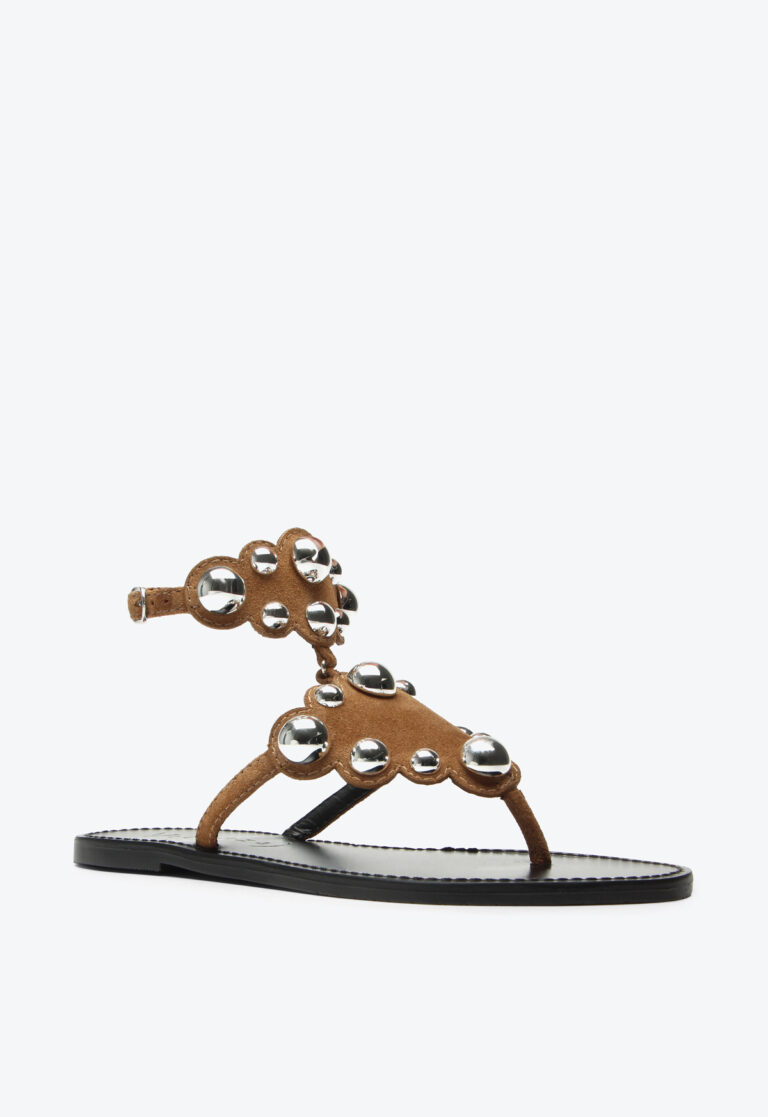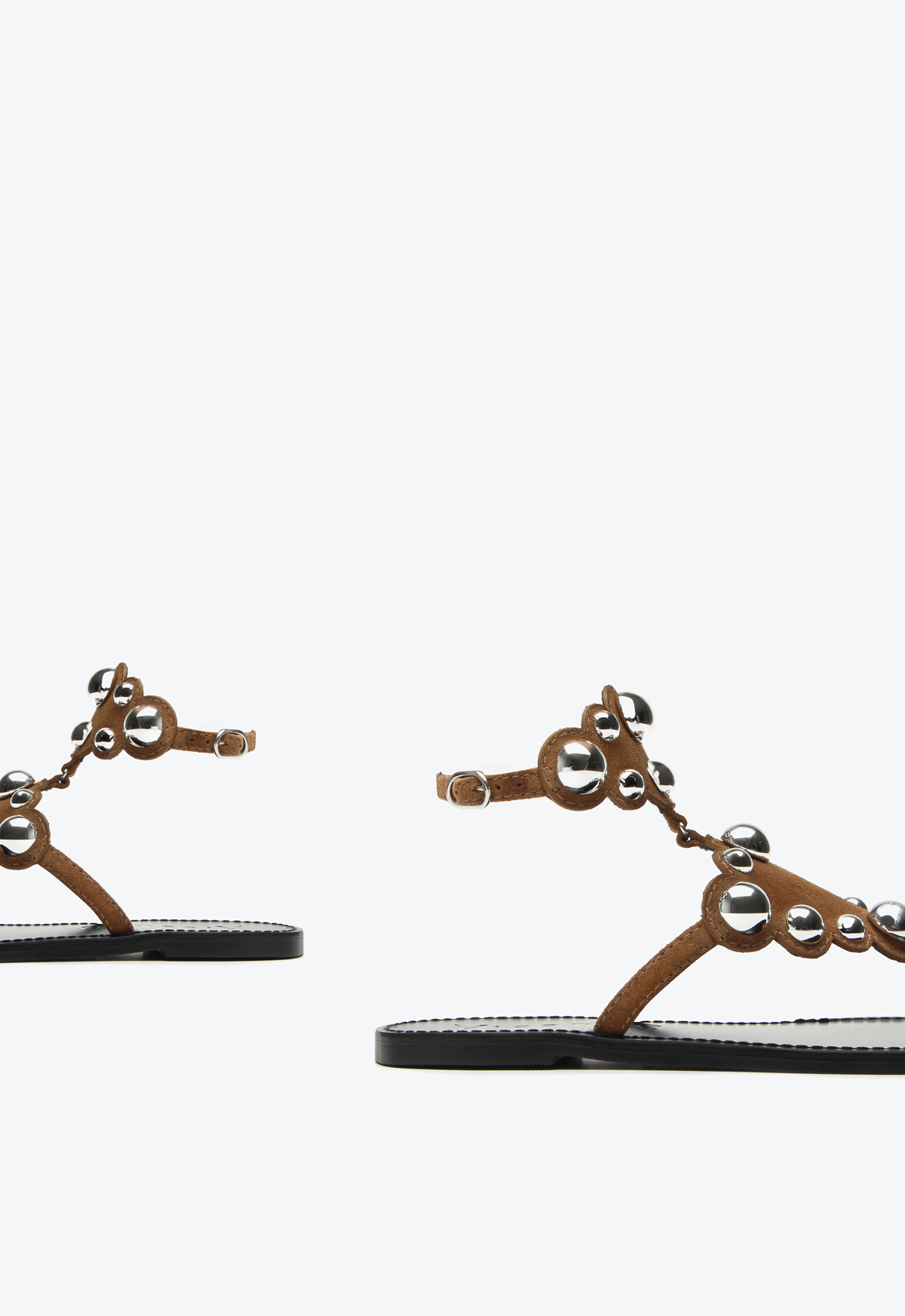 The Gaely flat in suede embodies summer with elegance and attitude, featuring delicate straps and metallic sphere embellishments that add shine and movement to the look. With a light and sophisticated design, it transforms fresh outfits into stylish and full-of-personality ensembles.