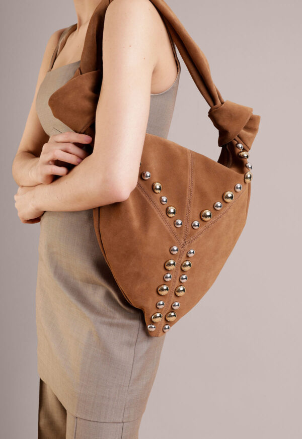 Large caramel suede bag. Laid-back and full of attitude, this bag is made to be the star of your look, adding a touch of style and personality to any outfit. Essential for anyone seeking a practical, modern, and charming accessory for everyday wear, it pairs perfectly with a variety of outfits — from casual to more sophisticated looks.