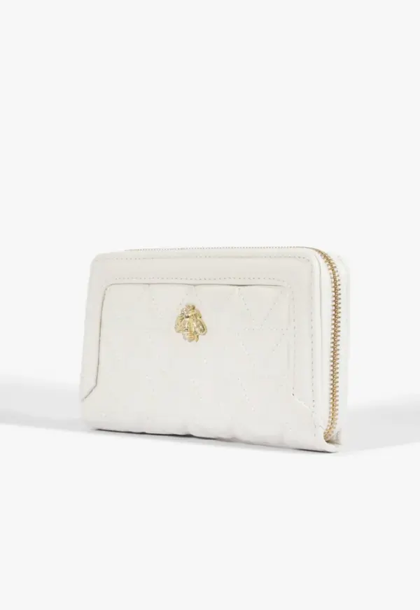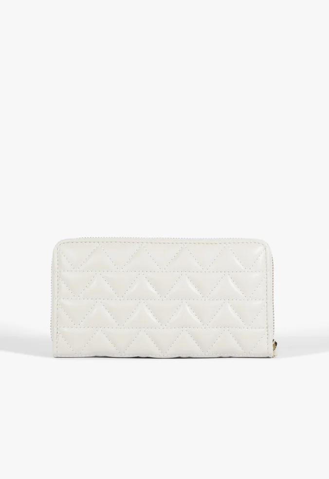With its rectangular shape and structured construction, this Off-White wallet is perfect for keeping everything you need in one place. It features multiple compartments and sections for documents, cash, and small items, along with the practicality of a zip closure. Made from quilted leather and finished with the gold Believe bee, this large women’s wallet is both sophisticated and functional — a truly refined choice!