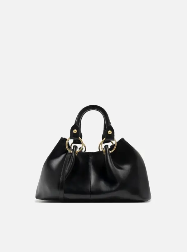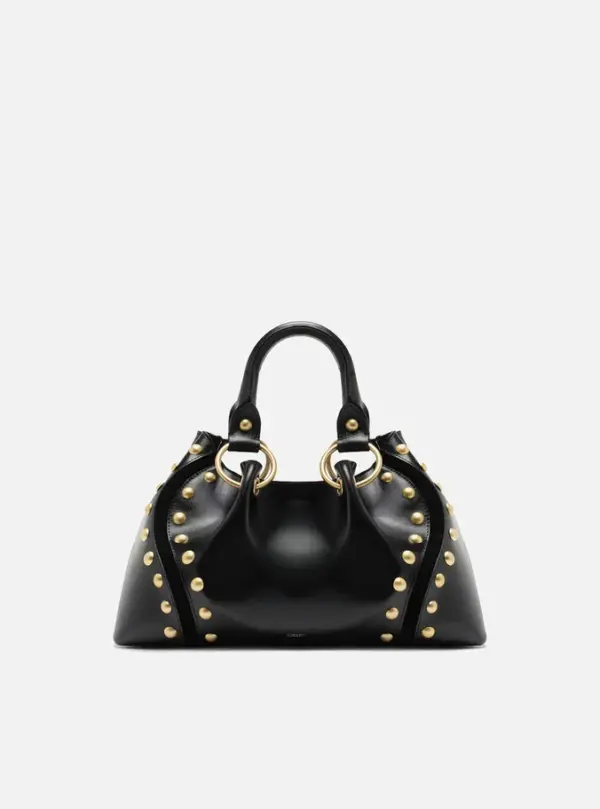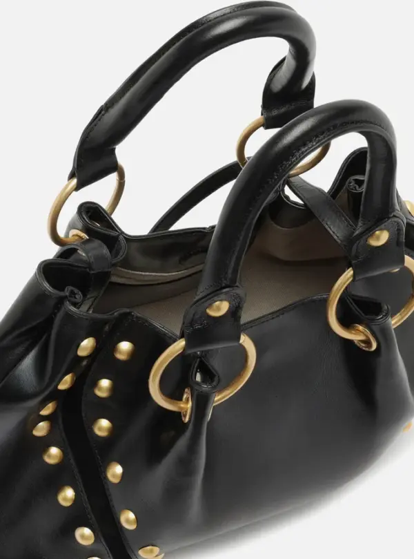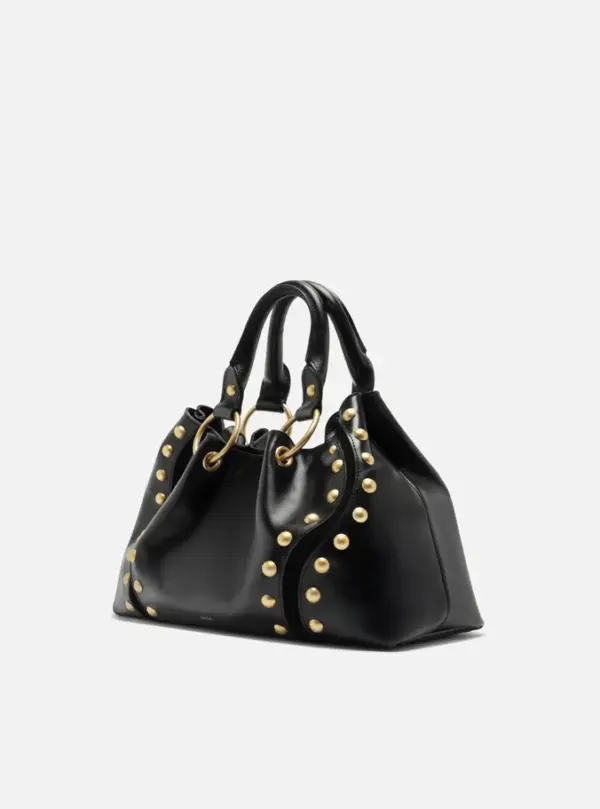 Medium Black Leather Tote Bag With Studs