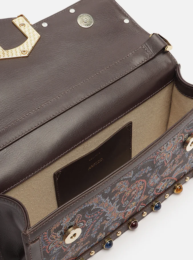 Medium Brown Paisley Leather A001 Crossbody Bag