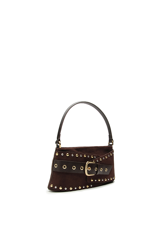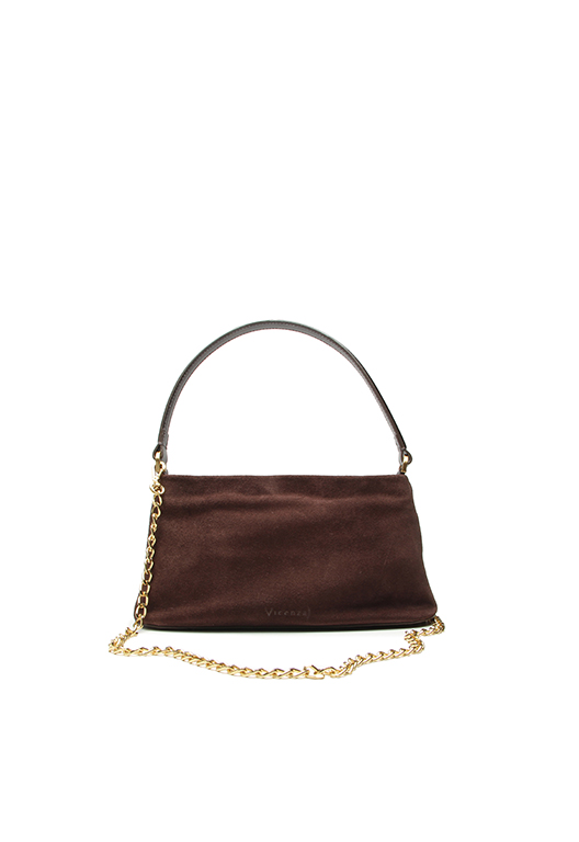 Medium Brown suede leather Thaila bag with a top handle. With a rustic boho look and a sophisticated western vibe, this piece is one of VCZ’s top bets for Summer ’26. The front buckle detail brings personality and authenticity to the design. The top handle and the longer chain strap offer versatile styling options and enhance the bag’s striking character. An ideal accessory for those who seek originality and attitude in their look.
