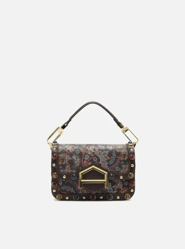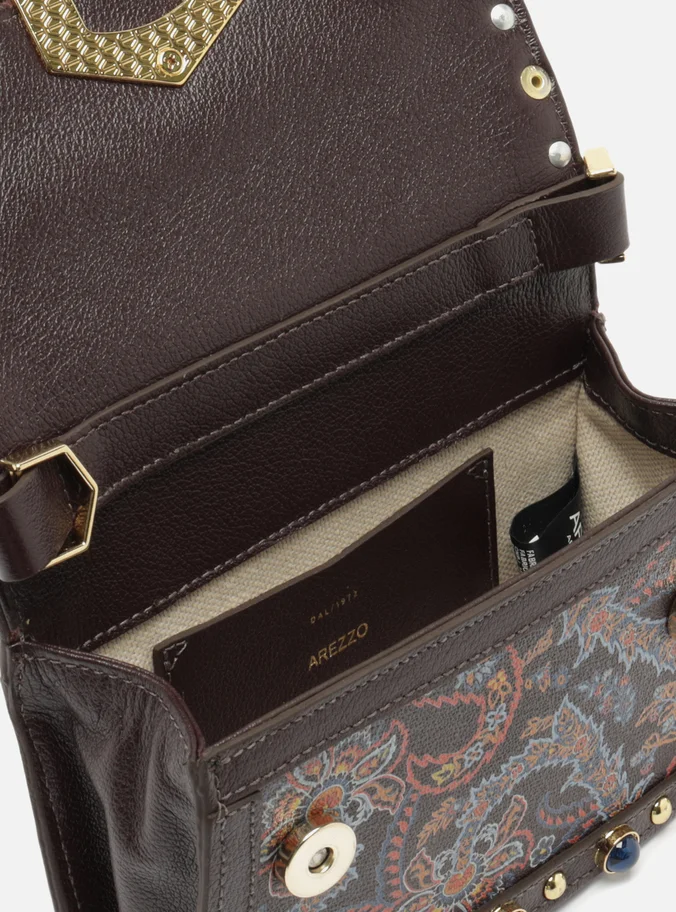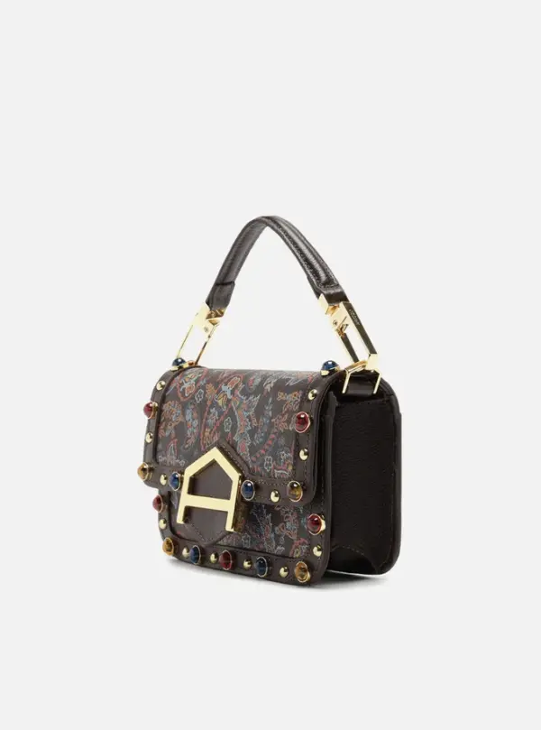 Small Brown Leather A001 Crossbody Bag With Stones
